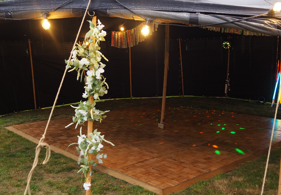 A dancefloor, disco lighting and a black canvas roundhouse will take your event into the evening.